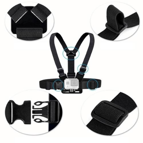 O suporte de peito GoPro é perfeito para capturar todos os seus momentos e mesmo assim manter a liberdade das mãos pois a câmera fica presa ao seu peito, assim: